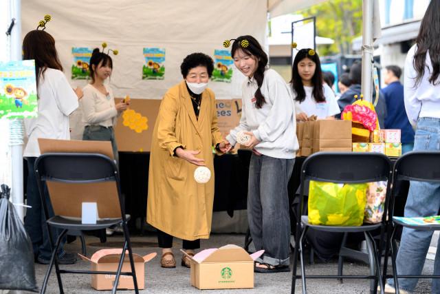 특히 ‘MGMG’팀이 운영한 ‘Bee-ssion Possible’ 부스는 벌과 환경의 긴밀한 관계를 체험형 콘텐츠로 풀어내며 이날 현장에서 최다 참여 인원을 확보했다. 참가자들은 ‘Bee-lance Game’을 통해 벌이 사라진 세상을 가정하고 선택지를 고르며 생태계에서 벌의 역할을 인식했고, ‘꽃가루 복구 대작전’에서는 꽃밭을 복원하는 게임을 통해 수분 활동의 가치를 체험했다. 이어 ‘친환경 인증 마크 Match up!’ 게임으로 친환경 소비가 곧 벌 보호로 이어진다는 점을 배우고, 마지막 ‘To. the bees’ 코너에서는 벌에게 응원의 메시지를 남기며 체험을 마무리했다.