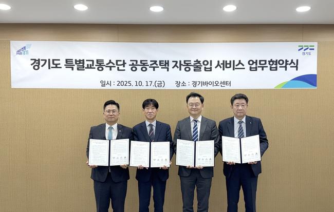 경기도와 경기교통공사, 대한주택관리사협회 경기도회, 전국아파트입주자대표회의연합회 경기도지부는 17일 이런 내용을 담은 `경기도 특별교통수단 공동주택 자동출입 서비스` 도입을 위한 업무협약(MOU)을 체결했다.