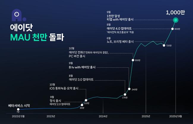 이를 통해 에이닷은 한층 개인화된 AI 경험을 제공할 수 있게 됐으며, 업데이트 이후 MAU가 추가로 100만명 가까이 증가하며 가파른 성장세를 이어갔다.
