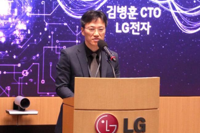LG전자가 24일 LG전자 서초R&D캠퍼스에서 한국과학기술원(KAIST), 한국표준과학원(KRISS)와 함께 개최한 `Future 2030 서밋`에서 LG전자 CTO 김병훈 부사장이 환영사를 하고 있다.