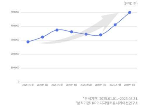 종합커뮤니케이션그룹 KPR(사장 김주호) 부설 KPR 디지털커뮤니케이션연구소가 300만 건의 소셜 빅데이터를 분석한 결과, ‘친환경 마케팅’ 언급량이 꾸준한 상승세를 보였다고 발표했다. 1월 약 29만 건에서 출발해 3월 37만 건을 기록한 후 소폭 하락했으나, 7월에는 40만 건, 8월에는 50만 건에 도달하며 뚜렷한 반등세를 나타냈다. 이는 기후위기가 일상화된 상황에서 소비자들이 지속가능성을 중시하고 있음을 보여준다.